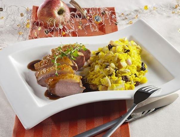 Quelle: https://www.ichkoche.at/honig-entenbrust-mit-curryreis-rezept-190018